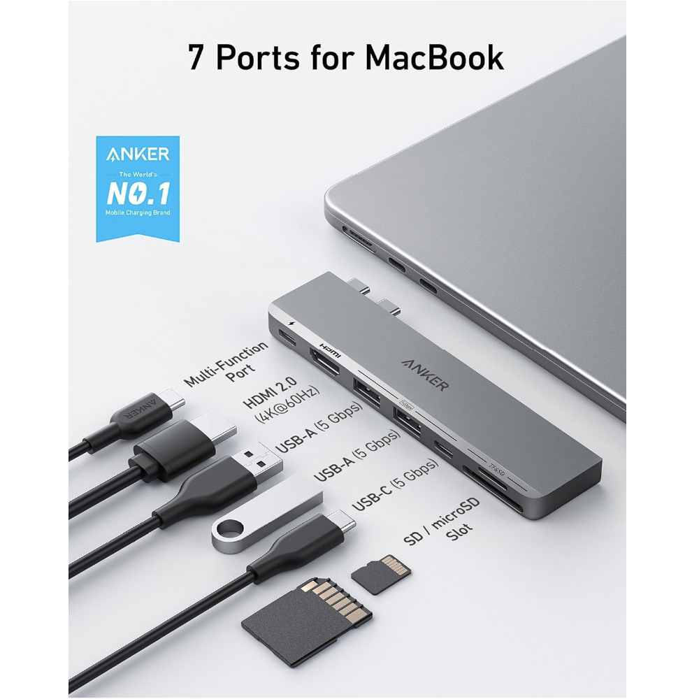 Anker Hub 547 Usb-C Hub (7 En 2), Usb C Thunderbolt 4, Hdmi 4k, Usb C Y 2 Usb A, Pd100w,Lector Sd