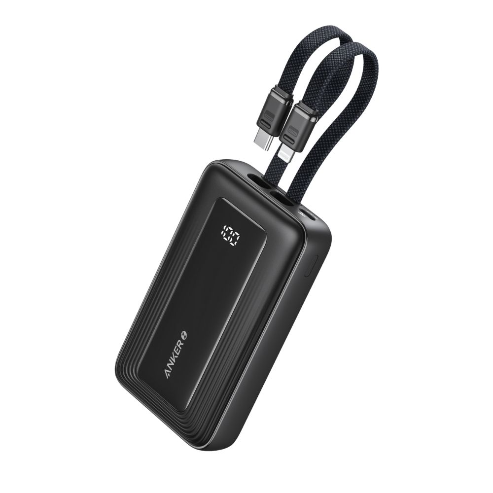 Anker Power Bank (10k,30w, Built-In Usb-C+Lightning Cable) B2b – Un (Excluded Cn, Europe) Black Ite