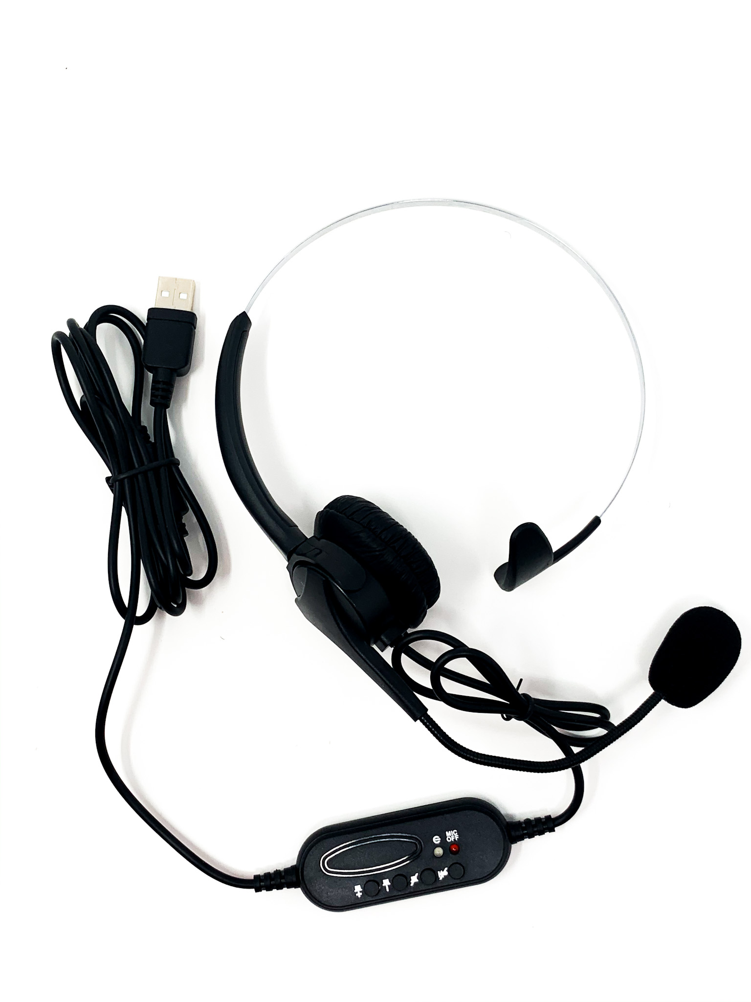 Auricular con microfono, control de volumen, hold con salida usb. Para computadoras, laptop, call center.