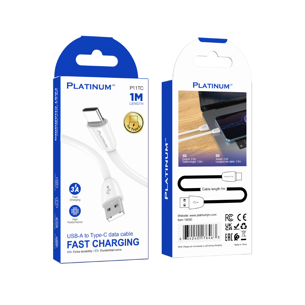 Cable Engomado Tipo C, 1m/3 Pies, Usb-A A Tipo C, P11tc Platinum