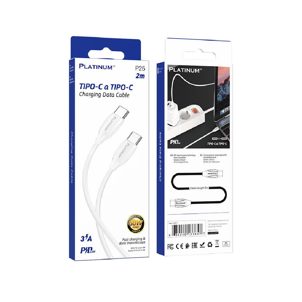 Cable Tipo C/Tipo C / 2 Metros Platinum 60w