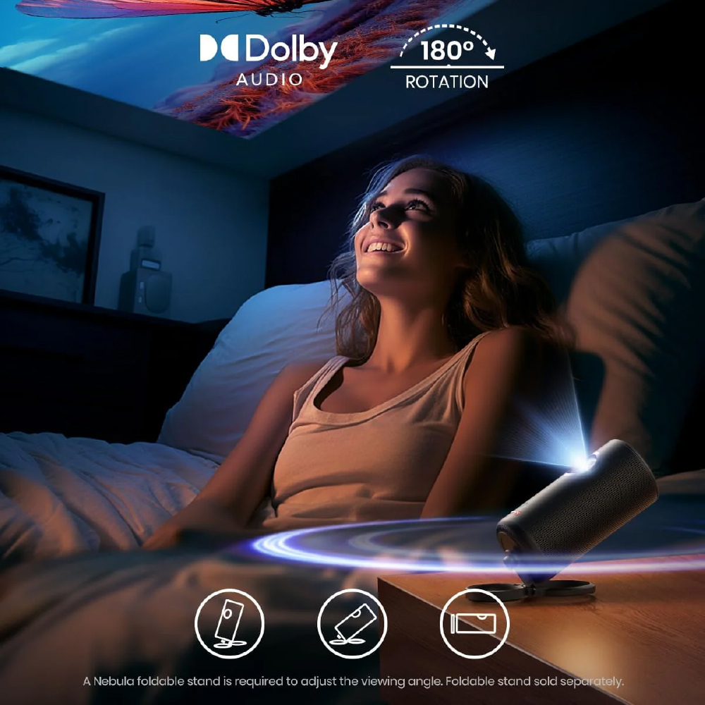 Viaje liviano, proyecte en grande: con solo 2 lb (900 g) y un 90 % más pequeño que otros con brillo similar, NEBULA Capsule 3 Laser proyecta una pantalla de hasta 120 pulgadas y cabe fácilmente en su bolso para presentaciones o noches de cine en cualquier lugar.
